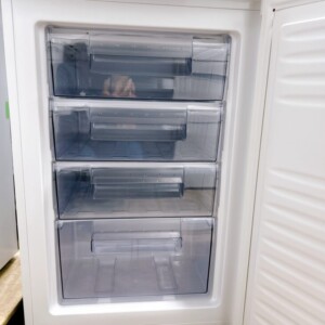 お引き取りした冷凍庫は、外観に目立つへこみや割れは見られず、全体的にきれいな印象でした。庫内についても引き出しケースがすべて揃っており、食品汚れや強いニオイも確認されませんでした。冷却動作も問題なく、再販に十分対応できる状態でした。
