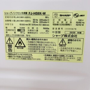 FJ-HS9X-Wはセカンド冷凍庫として安定した需要があり、年式が比較的新しく状態が良好な点を評価しました。庫内パーツの欠品がなく、再販時の整備コストを抑えられることから、中古市場の取引状況を踏まえて査定を行い、最終的に2,500円でのお買取りとなりました。