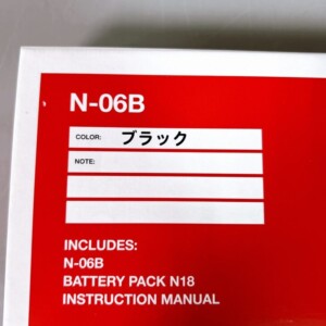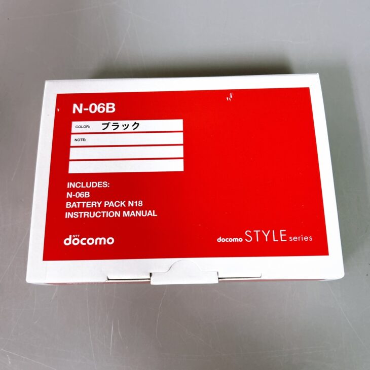 お預かりしたN-06Bは、外箱と取扱説明書、電池パックが揃っている状態でした。箱には保管による軽い擦れが見られましたが、大きな傷みはなく、本体も全体的に落ち着いた使用感でした。電源の立ち上がりや基本操作の確認もでき、通常使用に問題はありませんでした。