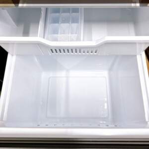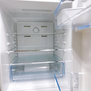 お預かりした冷蔵庫は、外装に使用に伴うごく軽微な擦れは見られたものの、目立つへこみや塗装剥がれは確認されませんでした。庫内は冷蔵室・冷凍室ともに汚れや臭いがほとんどなく清潔な状態で、ガラス棚やドアポケット、野菜ケースなどの付属品も揃っていました。動作確認では冷却性能も安定しており、日常使用に問題のないコンディションでした。