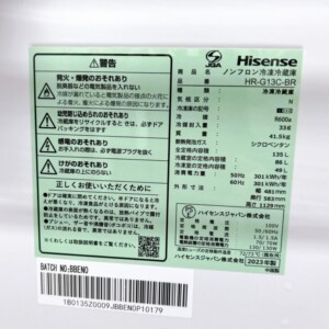 宮崎県宮崎市で冷蔵庫買取 Hisense HR-G13C-BR 2023年製 庫内きれいで動作良好のため適正価格で査定