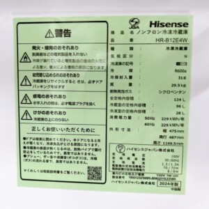 今回は宮崎県都城市にお住まいのお客様より、Hisense ノンフロン冷凍冷蔵庫 HR-B12E4W(2024年製)を出張買取にてご依頼いただきました。