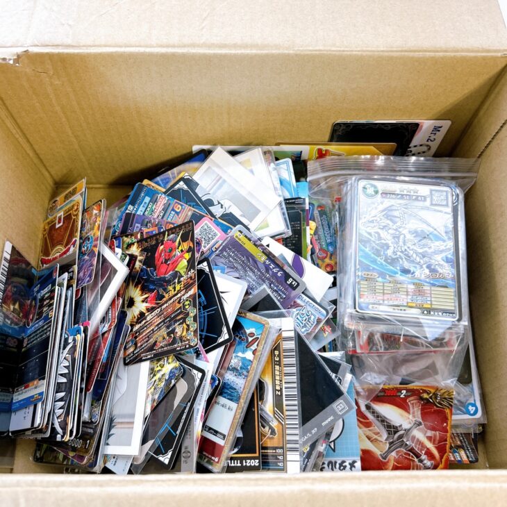 お客様は「子どもと一緒に集めていたが、枚数が増えすぎて保管場所を圧迫していた」とのことで、不要になったカードの整理を検討されていました。種類が多く、自分で仕分けして売るのが難しい点もあり、まとめて引き取ってもらえる出張買取を希望されたそうです。
