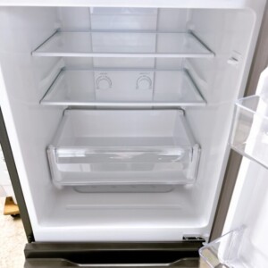 お預かりした冷凍冷蔵庫は、外観に目立つ傷やへこみはなく、使用感の少ないきれいな状態でした。庫内も汚れやニオイは見られず、棚やドアポケットなどの付属備品もすべて揃っている点が高評価となりました。冷却動作や庫内灯の点灯も問題ありませんでした。
