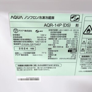 今回は山鹿市にお住まいの30代女性・主婦・夫婦世帯のお客様より、AQUA ノンフロン冷凍冷蔵庫 AQR-14P(2024年製)を出張買取にてご依頼いただきました。比較的新しい年式の冷蔵庫で、日常使いされていたものの状態が良い一台でした。