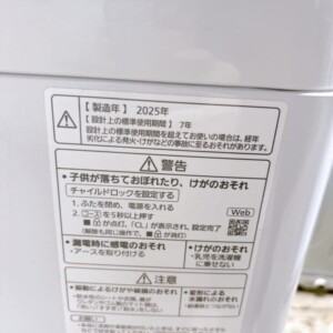 外観に軽い使用感はあるものの、2025年製の高年式モデルであり、洗濯槽内部の状態が非常に良好だった点を評価しました。ホース欠品を考慮したうえでも再販需要が高いと判断し、7,000円での査定価格をご提示しました。