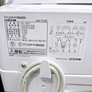 今回は富岡市にお住まいの50代女性・主婦・夫婦世帯のお客様より、アイリスオーヤマ 全自動洗濯機 IAW-T502E(2020年製)を出張買取にてご依頼いただきました。買い替えにより不要となった洗濯機の整理をご希望でした。