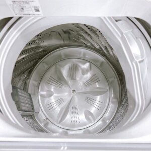 本体外観には日常使用に伴う擦れや軽度の使用感が見られましたが、目立つ割れや大きなへこみは確認されませんでした。洗濯槽内部は汚れやカビの付着が少なく、非常にきれいな状態を保っており、動作確認でも給水・洗濯・脱水の各工程に問題はありませんでした。給水ホースは付属していませんでしたが、使用年数が浅い点を考慮しました。