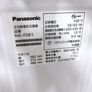今回は沼田市にお住まいの30代男性・会社員・単身世帯のお客様より、Panasonic 全自動電気洗濯機 NA-F5B1(2023年製)を出張買取にてご依頼いただきました。引っ越しに伴い、不要となった家電の整理をご希望とのことでした。