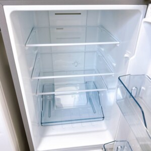 お預かりした冷蔵庫は、外観にわずかな使用感は見られるものの、目立つ傷やへこみはなく全体的に落ち着いた状態でした。庫内は棚・ケースともに透明感があり、食品汚れやニオイ残りも少なく、清潔感のある状態を保っていました。冷却動作や庫内灯、温度調整ダイヤルも正常に作動しており、使用に問題はありませんでした。