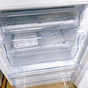 お預かりした冷蔵庫は、外観にごく軽微なスレが一部見られる程度で、目立つへこみや大きなキズは確認されませんでした。庫内は棚板・ドアポケット・冷凍室ケースまで使用感が少なく非常に清潔な状態で、ニオイ残りや汚れもありませんでした。冷却動作・庫内灯・ドア開閉も正常で、動作面に問題は見られませんでした。
