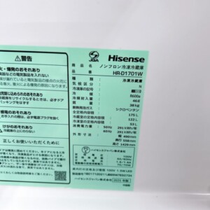 今回は広島県尾道市にお住まいの20代男性・会社員・単身世帯(賃貸マンション)のお客様より、Hisense(ハイセンス)ノンフロン2ドア冷凍冷蔵庫 HR-D1701W(2025年製)の出張買取をご依頼いただきました。