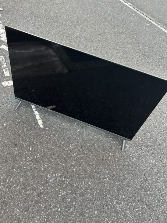 お預かりしたテレビは、液晶画面に割れや表示不良はなく、映像・音声ともに正常に動作する状態でした。画面表面には細かな汚れの付着が見受けられましたが、拭き取りで改善可能な範囲です。本体フレームやスタンド部分にも大きな破損はなく、純正リモコンが付属している点も評価対象となりました。