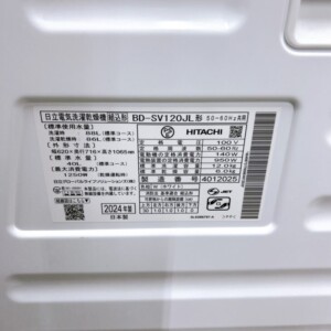 今回は埼玉県飯能市にお住まいの50代女性・主婦(夫婦世帯/持ち家(一戸建て))より、HITACHI ドラム式洗濯乾燥機 BD-SV120JL(2024年製・日本製)を出張買取にてご依頼いただきました。洗濯容量12.0kg、乾燥容量6.0kgの大容量モデルで、ご家庭向けとして需要の高いドラム式洗濯乾燥機です。