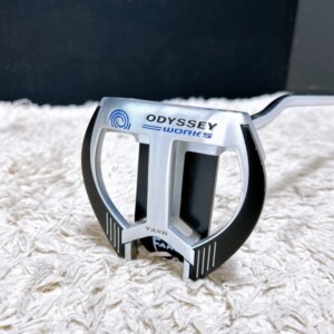 今回は埼玉県桶川市にお住まいの40代男性・会社員(単身/賃貸マンション)より、Odyssey Works Tank Fang パターを出張買取にてご依頼いただきました。ヘッドにはOdyssey Worksのロゴ、ソールにはTANK / FANGの刻印が確認でき、安定感を重視した大型ヘッド設計が特長のモデルです。