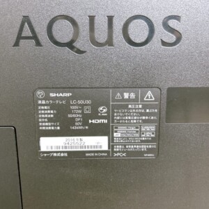 今回は埼玉県蕨市にお住まいの40代男性(会社員・単身世帯)より、SHARP AQUOS 液晶テレビ LC-50U30(2016年製)を出張買取にてご依頼いただきました。お住まいは賃貸マンションで、大型テレビのため持ち運びが難しいことから、出張対応をご希望されました。