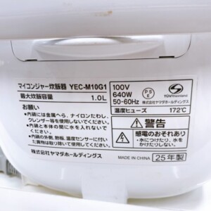 YEC-M10G1は比較的新しいモデルで、単身用サイズとして一定の需要があります。今回は年式が新しく、状態が良好である点を評価しました。他社では小型炊飯器はまとめ扱いになるケースも多い中、再販可能と判断できたため、1,800円での査定価格をご提示しました。