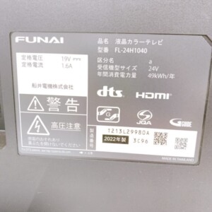 今回は新潟市にお住まいの40代男性より、FUNAI(フナイ)24V型液晶カラーテレビ FL-24H1040(2022年製)を出張買取にてご依頼いただきました。単身でお住まいの賃貸マンションにて使用されていたお品で、買い替えをきっかけにご相談をいただいております。