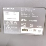 お預かりしたFUNAIの液晶テレビは、画面に目立つ傷や焼き付きは見られず、映像表示も安定している状態でした。フレーム部分には使用に伴う細かなスレが一部見受けられましたが、全体的には清潔感があり、日常使用には問題のないコンディションです。純正スタンドと電源アダプターも揃っており、動作確認も良好でした。