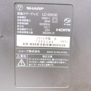 新潟県五泉市でシャープ AQUOS 22型液晶テレビ LC-22K30 2015年製 リモコン付きで出張買取しました