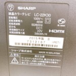 神奈川県横須賀市にてSHARP 液晶テレビ LC-22K30 使用感があるため状態を考慮して査定しました