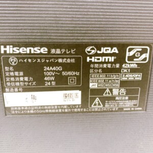 神奈川県横浜市神奈川区にてHisense 液晶テレビ 24A40G 使用感ありのため状態を考慮して査定しました
