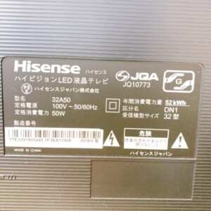 神奈川県横浜市金沢区にてHisense 液晶テレビ 32A50 使用感ありのため状態を考慮して査定しました