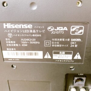 神奈川県平塚市にてHisense 液晶テレビ HJ24K3120 使用感ありのため状態を考慮して査定しました