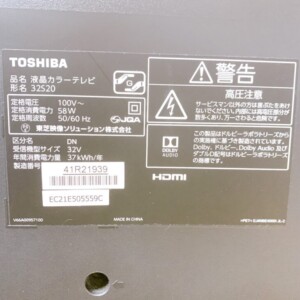 神奈川県茅ヶ崎市にてTOSHIBA 液晶テレビ 32S20 使用感ありのため状態を考慮して査定しました