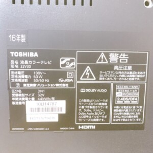 神奈川県秦野市にてTOSHIBA 液晶テレビ 32V30 使用感ありのため適正価格で出張買取しました
