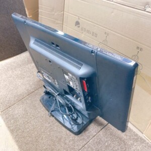 お預かりした三菱電機の液晶テレビは、全体的に使用感が見られる状態でした。画面には細かな拭き跡や薄いスレが確認でき、スタンド部分にも日常使用による小傷が見受けられます。背面や端子周りには大きな破損はなく、電源投入後の表示・音声ともに問題なく動作を確認しました。付属品としてリモコンが1点付いており、こちらも操作に支障はありませんでした。