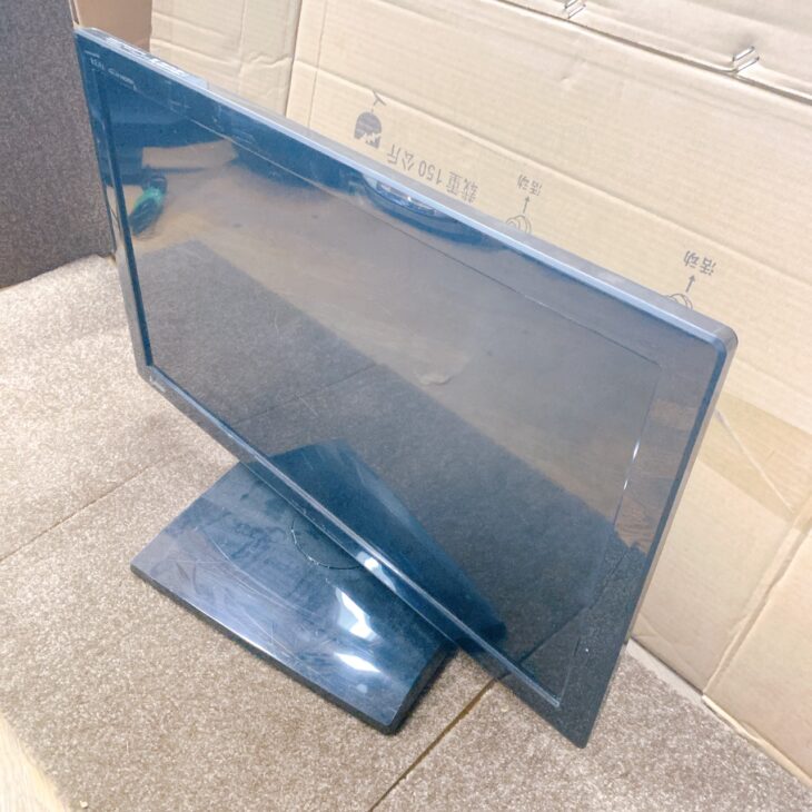 お預かりした三菱電機の液晶テレビは、全体的に使用感が見られる状態でした。画面には細かな拭き跡や薄いスレが確認でき、スタンド部分にも日常使用による小傷が見受けられます。背面や端子周りには大きな破損はなく、電源投入後の表示・音声ともに問題なく動作を確認しました。付属品としてリモコンが1点付いており、こちらも操作に支障はありませんでした。