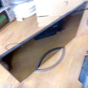 お預かりした液晶テレビは、全体的に使用感が見られる状態でした。液晶画面に割れや表示不良はなく、映像・音声ともに正常に動作していることを確認しています。一方で、画面表面には拭き跡やくすみがあり、フレームや背面、スタンド部分にはホコリの付着や擦れ跡が確認できました。