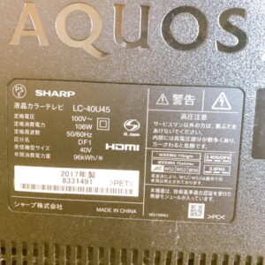 神奈川県川崎市中原区にてSHARP AQUOS 液晶テレビ LC-40U45 使用感ありのため適正価格で査定しました