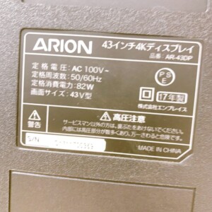 神奈川県川崎市高津区へ出張買取 ARION 4Kディスプレイ AR-43DP 使用感ありのため適正価格で査定しました