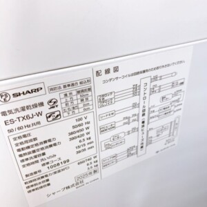 お引き取りしたES-TX6J-Wは、外装に目立つ傷やへこみはなく、全体的にきれいな状態でした。操作パネルの表示も問題なく、洗濯・乾燥ともに動作確認は良好です。洗濯槽内部にも大きな汚れやにおいの付着は見られず、使用頻度は比較的少ない印象でした。給水ホース・排水ホースなどの基本的な付属品も揃っていました。