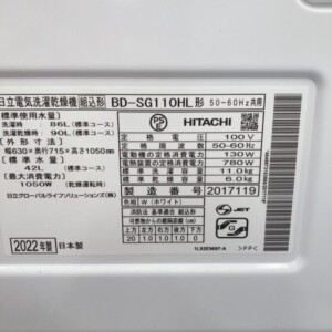 BD-SG110HLは日立のビッグドラムシリーズの中でも安定した需要があるモデルで、2022年製と比較的新しい点は評価ポイントとなりました。一方で、使用感が見られる点や中古市場での流通価格、再販時に必要な整備コストを踏まえて総合的に判断しています。その結果、今回は20,000円での買取価格をご提示しました。年式・動作状態・付属品の有無を考慮した、現実的な査定金額です。