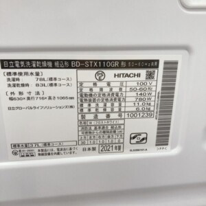 今回は藤枝市にお住まいの50代女性のお客様より、日立 電気洗濯乾燥機 BD-STX110GR(2021年製)を出張買取にてご依頼いただきました。ご自宅は持ち家(一戸建て)の親子世帯で、家電の整理を進めている中でのご相談です。