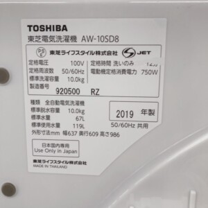 今回は島田市にお住まいの30代女性より、TOSHIBA 全自動電気洗濯機 AW-10SD8(2019年製)を出張買取にてご依頼いただきました。お住まいは賃貸アパートの単身世帯で、容量に余裕のある洗濯機を日常使いされていたとのことです。