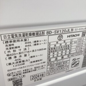 今回は静岡県掛川市にお住まいの40代男性・会社員のお客様より、日立 ドラム式電気洗濯乾燥機 BD-SV120JL(2024年製)を出張買取にてご依頼いただきました。単身世帯で賃貸マンションにお住まいのお客様からのご相談です。