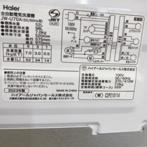 静岡県伊東市へ出張買取 Haier 全自動電気洗濯機 JW-U70A 2023年製 使用感の少ない状態のため適正価格で査定しました