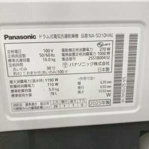 NA-SD10HALは2025年製の新しいドラム式電気洗濯乾燥機で、日本製という点も中古市場では評価されやすいポイントです。状態が良好で再販需要が高いことから、年式とコンディションを重視し、今回は25,000円での査定価格をご提示しました。他社では在庫リスクを考慮して控えめな価格になるケースもありますが、当社では最新年式モデルの需要を反映した価格設定を行っています。