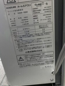 KOIZUMI(コイズミ)ウインド形冷房専用 ルームエアコン KAW-1602 2020年製◆査定について◆