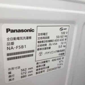 石川県白山市にてPanasonic 全自動洗濯機 NA-F5B1(5.0kg)を出張買取|動作良好のため適正価格で査定