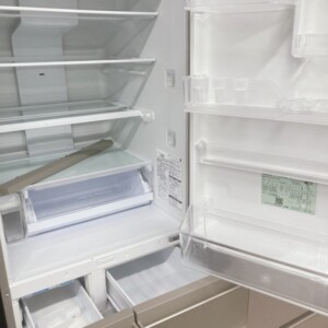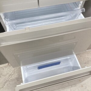 本体外観には使用に伴うごく軽度の汚れや細かな擦れが見受けられましたが、塗装の剥がれや目立つへこみは確認されませんでした。庫内は棚板・ドアポケット・ケース類がすべて揃っており、割れや欠損もなく清潔感のある良好な状態でした。冷蔵・冷凍・製氷機能についても動作確認を行い、温度管理や運転音に問題はありませんでした。