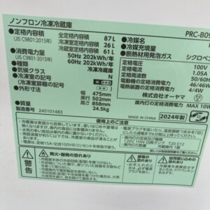 今回は千葉県四街道市にお住まいの20代男性・会社員のお客様より、アイリスオーヤマ ノンフロン冷凍冷蔵庫 PRC-B092(2024年製)を出張買取にてご依頼いただきました。単身世帯で賃貸マンションにお住まいのお客様からのご相談です。