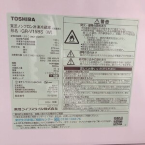 千葉県香取市で東芝 冷蔵庫 GR-V15BS 2024年製 使用感少なくきれいなため適正価格で査定しました