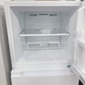 庫内についても、棚板・ケース類に割れや欠けはなく、冷蔵室・冷凍室ともに清潔感のある状態を保っています。動作確認では冷却状態・庫内灯の点灯・温度保持に問題はなく、日常使用に支障のない状態でした。付属品もトレー・棚板・ケース類がすべて揃っている点を評価しています。