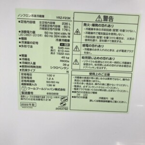 大阪府高槻市でヤマダセレクト ノンフロン冷凍冷蔵庫 YRZ-F23K 使用感少なくきれいなため出張買取しました