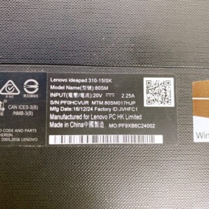 お預かりしたideapad 310-15ISKは、天板や底面に細かな擦り傷が見られるものの、大きな割れや破損は確認されませんでした。キーボードの欠損や液晶割れも確認されませんでした。動作自体は問題ありませんでしたが、製造から年数が経過している点が評価の大きなポイントとなりました。